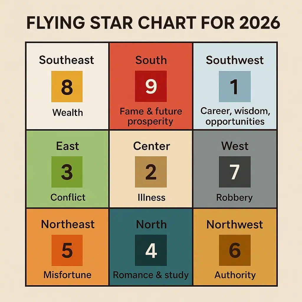 2.1.1 Southeast — The Wealth Star Arrives:The Southeast becomes the most powerful wealth and abundance sector of 2026.Activate this area by placing: